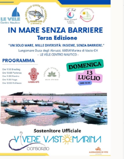 «Una giornata per donare un po’ di spensieratezza, stare in mare aperto con il suono delle onde, il vento tra i capelli e tutti i pensieri positivi che possono nascere in questi momenti» è la sintesi con cui Gessica Riccitelli dell’associazione Habibi Aps ha raccontato “In mare senza barriere”, l’evento nato tre anni per condividere in allegria e amicizia giornate con chi vive le barriere sociali e fisiche nella vita di ogni giorno. Un evento che ha visto protagonisti il Fishing Club, presieduto da Natalino Del Casale, con l’associazione Habibi Aps, il circolo nautico di Vasto “Le Vele” e il Consorzio “Vivere Vasto Marina”. Presenti l’assessora alle politiche sociali Anna Bosco e l’assessore regionale alle attività produttive Tiziana Magnacca. Oltre 20 i partecipanti, di tutte le età.